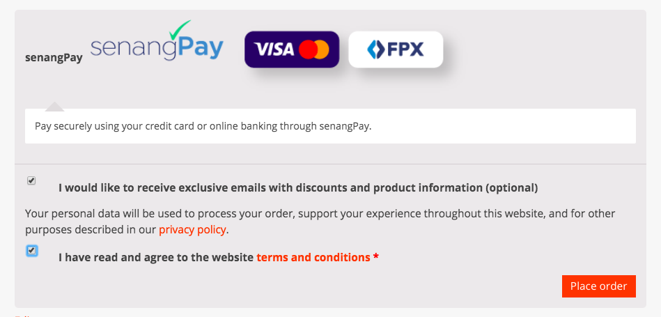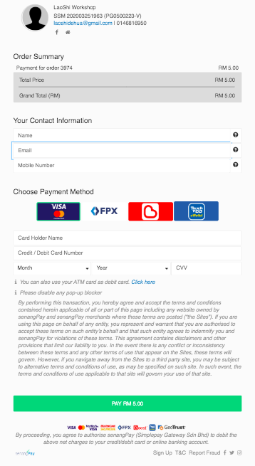 - Choose payment method: Credit Card, FPX, Boost, TouchnGo