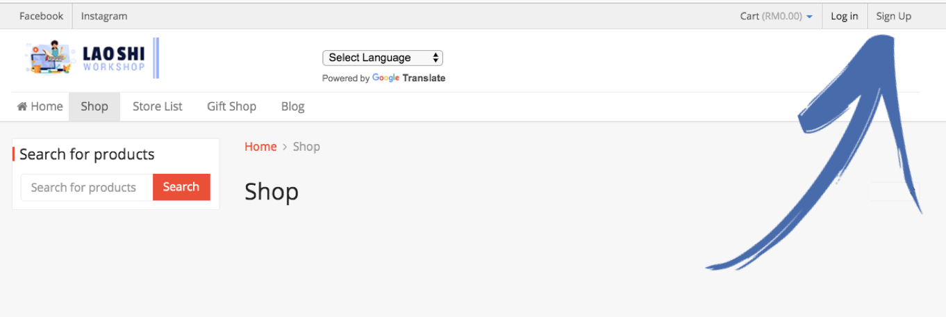 Step 5: Click 'Shop' to shop or use 'Search for products'