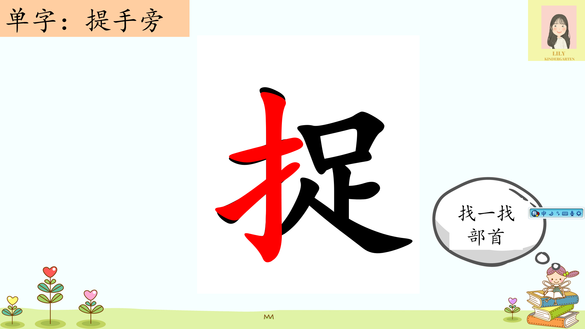✅ 根据红蜻蜓学前阅读设计部首演示文稿教学。