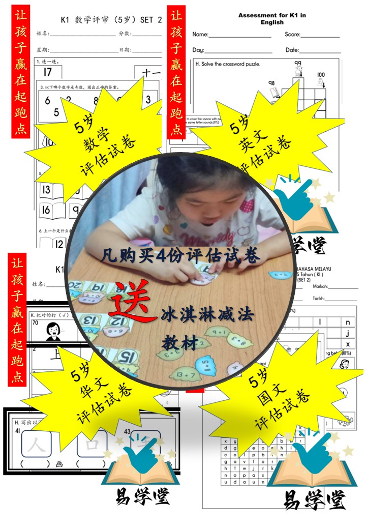 学前教育/幼儿园 (K1 / 5岁)SET 2 (全套4份 送冰淇淋减法教材)