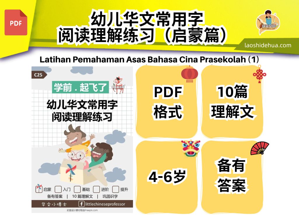 C25🎓Softcopy 🎓【学前✈️起飞了】幼儿华文常用字阅读理解练习(启蒙篇)【Preschool Chinese】Mandarin Common Words Reading Comprehension Exercise Level 1