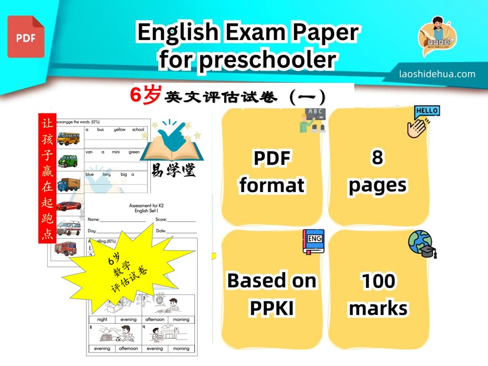 ![[Preschool English]6岁英文评估试卷 Exam Paper K2 Set 1 - Image 2](https://laoshidehua.com/wp-content/uploads/2023/05/英文-may-2023.jpg)