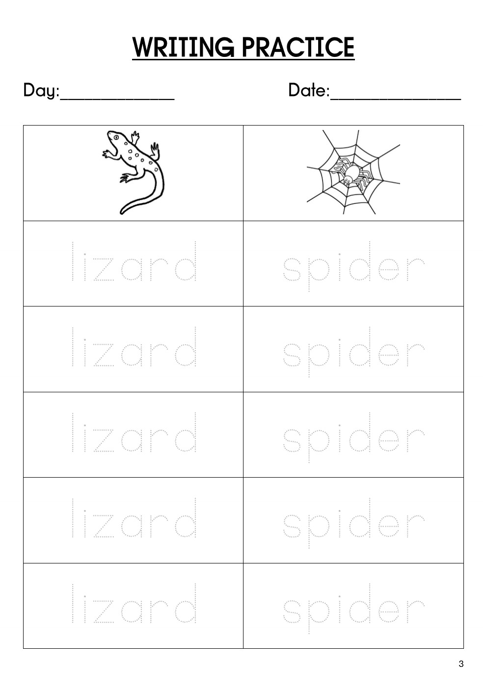 💥WRITING PRACTICE (ANIMALS)
