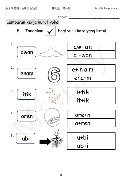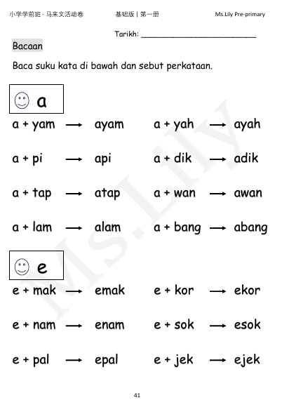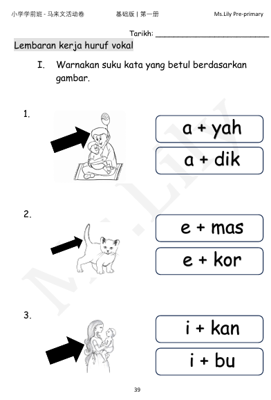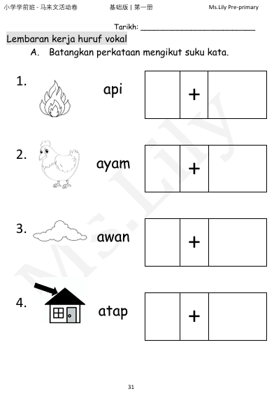 💥Softcopy💥 【学前】马来文活动卷, 基础班 (第一册) [Prasekolah] Bahasa Melayu