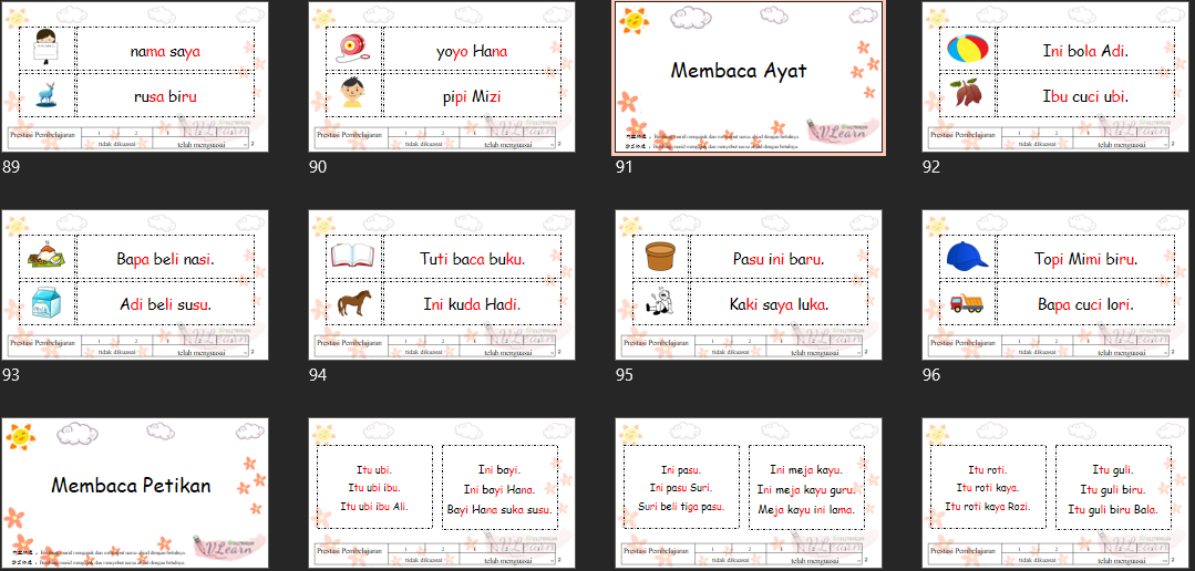 📌 Membaca suku kata KV+KVK(10 muka surat)