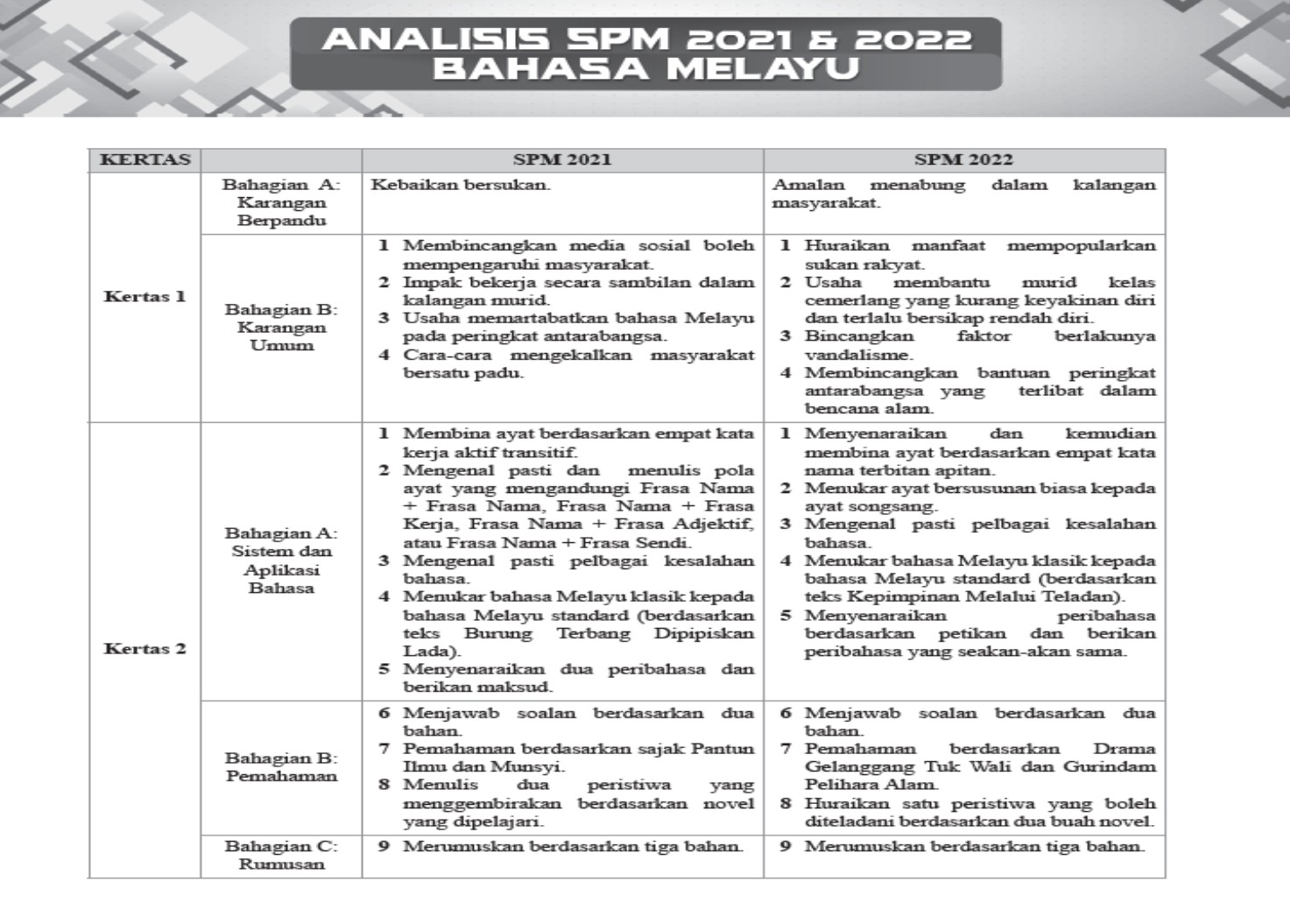 ANALISIS SPM 2021 & 2022 BAHASA MELAYU: SPM 2021 & 2022国文试卷分析