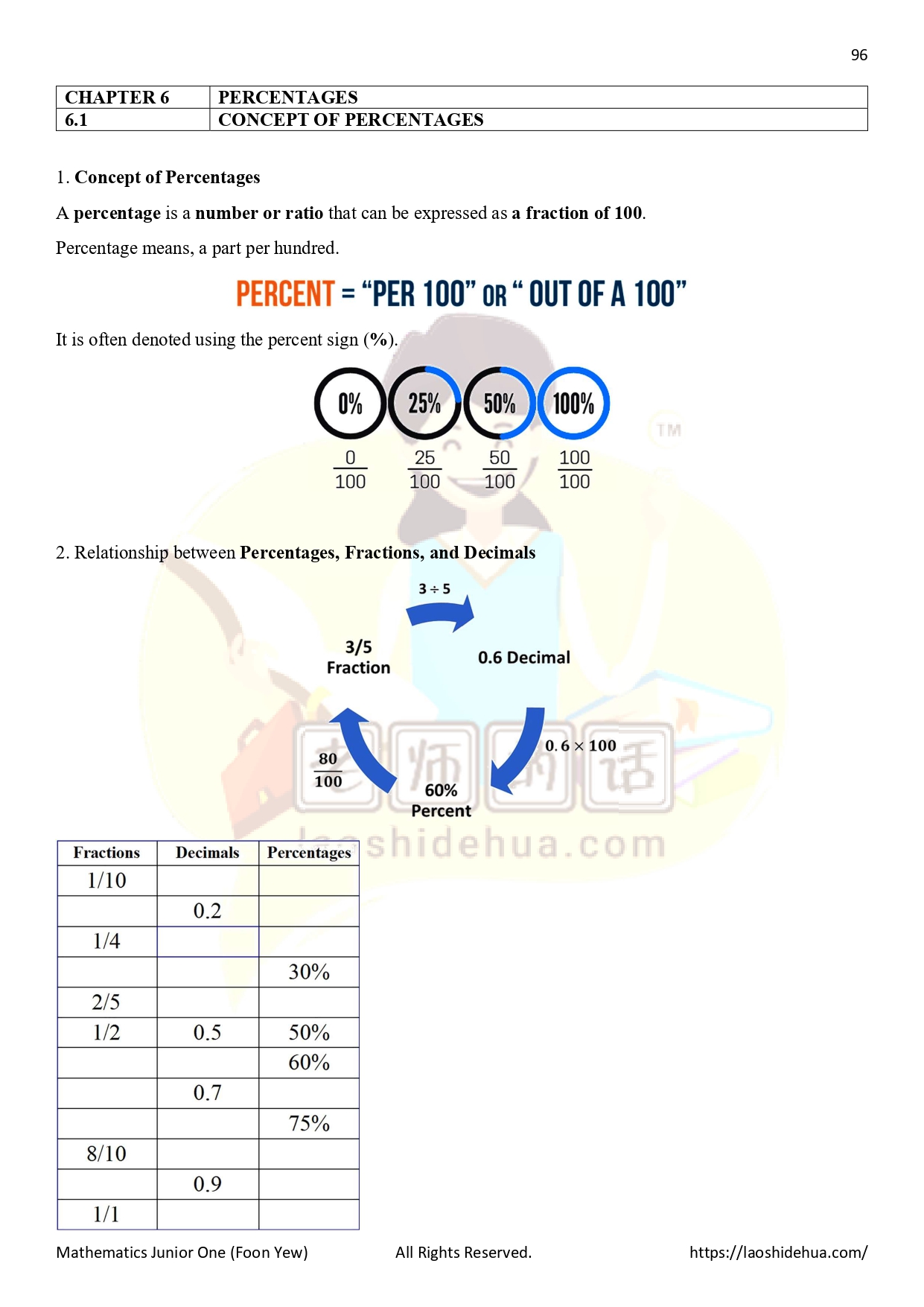 ![[独中数学] 宽柔独中(A组[初中一数学] 笔记与练习 Foon Yew Mathematics Junior One (Book 1&2) - Image 3](https://laoshidehua.com/wp-content/uploads/2023/11/C6-Percentages_pages-to-jpg-0001.jpg)