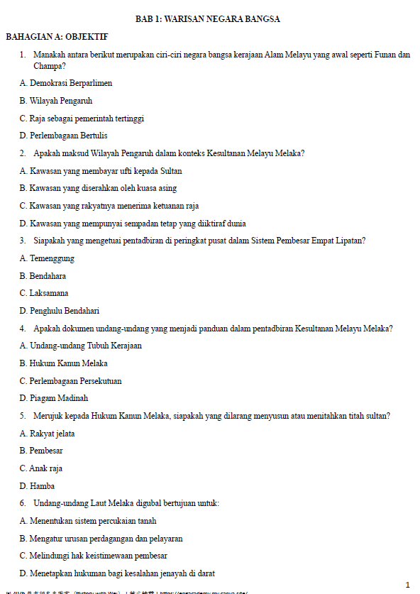 LATIHAN TROPIKAL SEJARAH TINGKATAN 4 中四历史单元练习 KSSM
