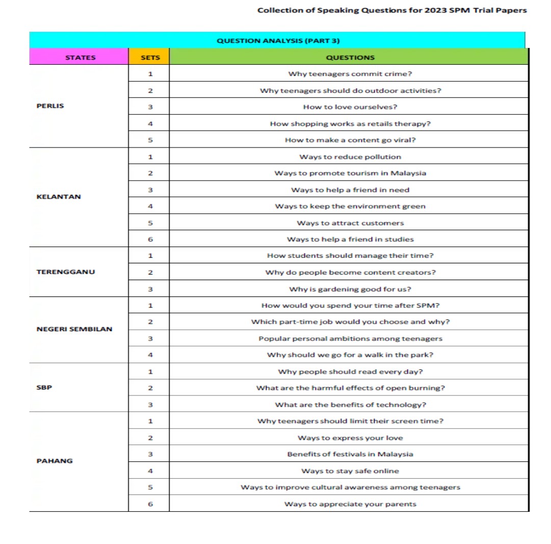 SPM English KSSM Paper 3 Speaking Trial paper collection 2023