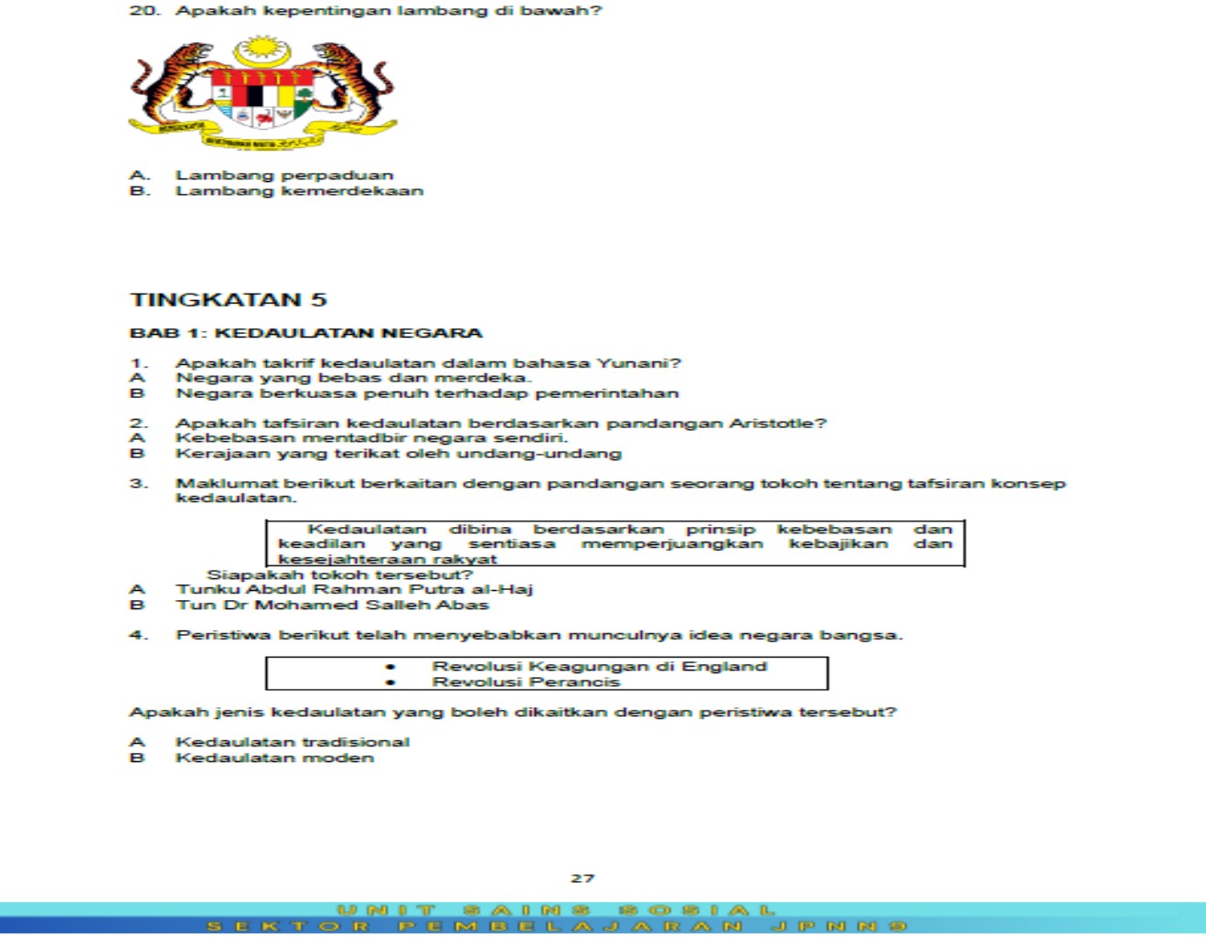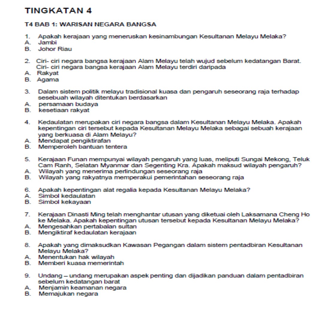 - Soalan hanya dalam pilihan A dan B sahaja