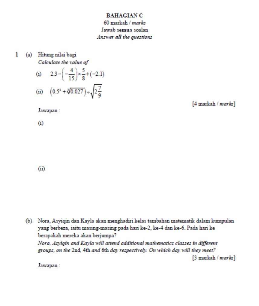 Tingkatan 1 Matematik (Dwibahasa) UPSA Ujian Pertengahan (2 SET)