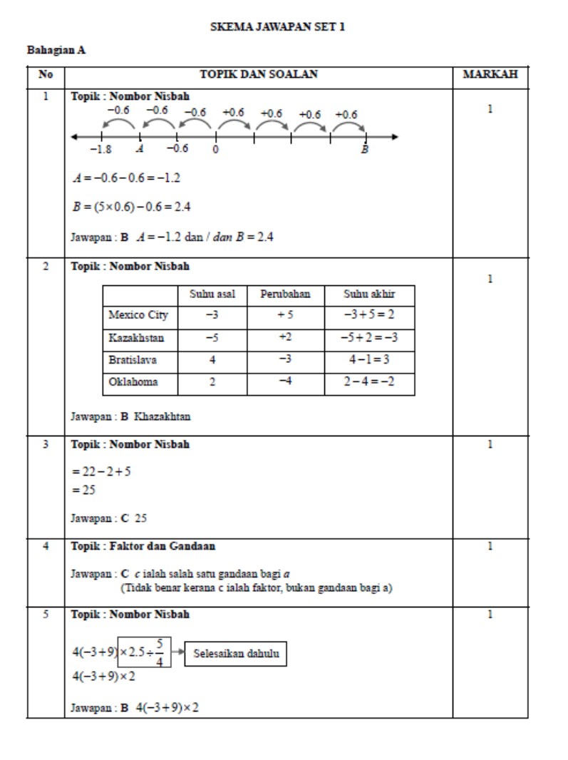 - Tingkatan 1 Matematik UPSA Ujian Pertengahan Sesi Akademik ( 2 SET)