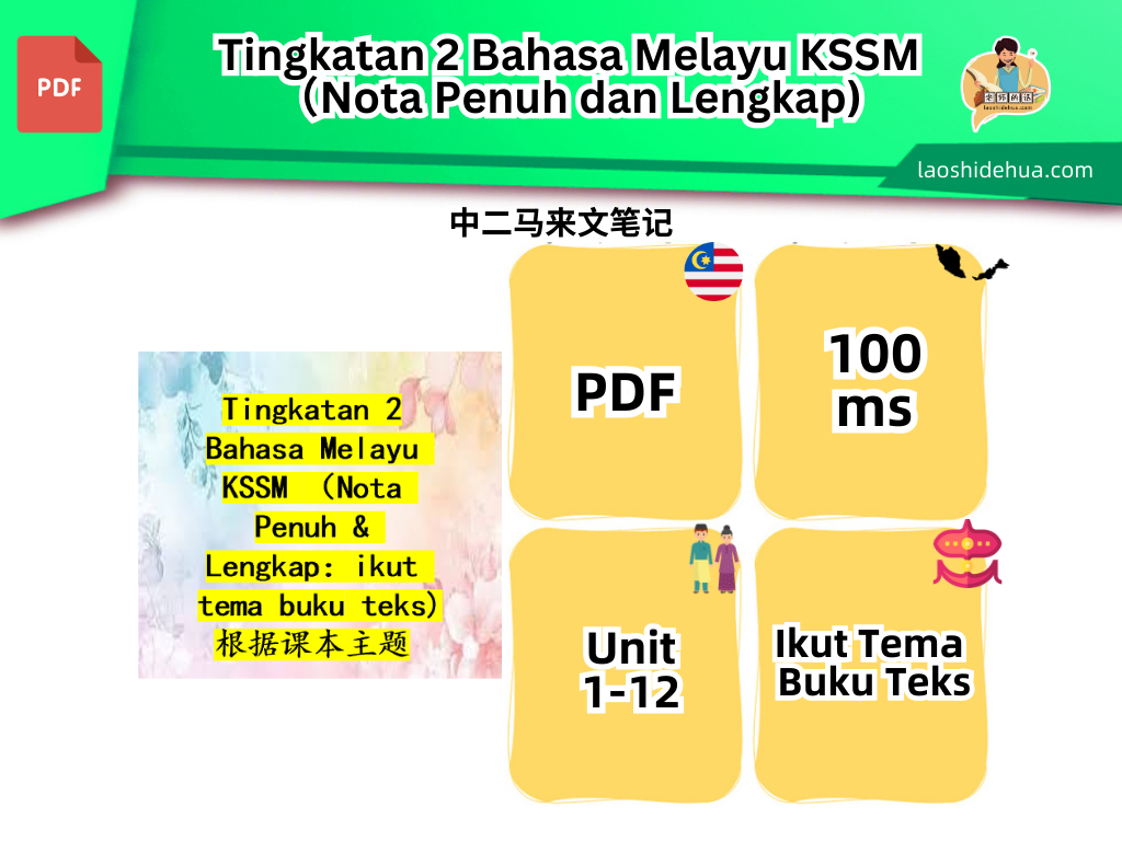 Tingkatan 2 BM KSSM – Nota Lengkap & Mudah Difahami 根据课本主题整理,内容清晰完整📖,马来文 + 中文双语,让学习更高效。