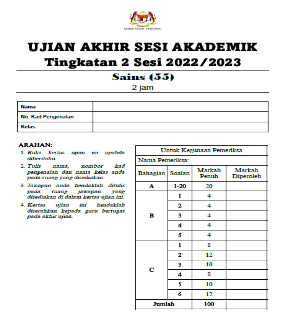 Tingkatan 2 Sains UASA 2022/2023 (Dwibahasa) (1 SET)