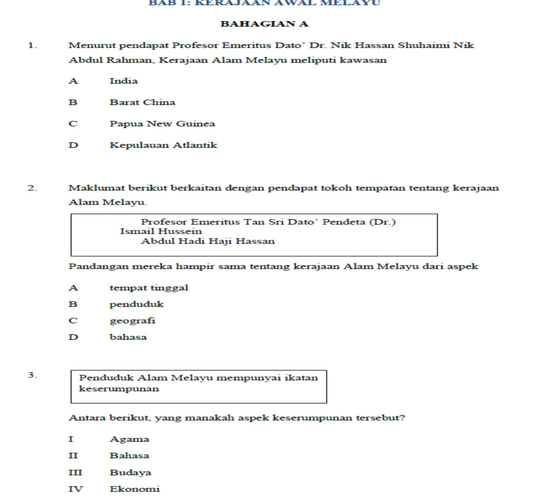 Tingkatan 2 Sejarah (Mengikut tema buku teks KSSM) Soalan Objektif, Soalan Struktur, Soalan Esei
