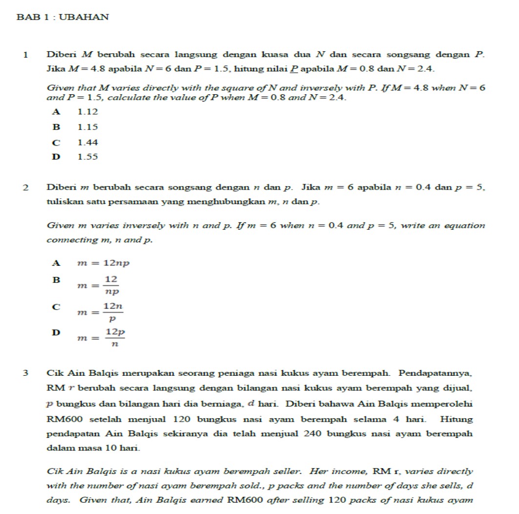 Tingkatan 5 Matematik (Dwibahasa) Soalan Peperiksaan ikut tema buku teks