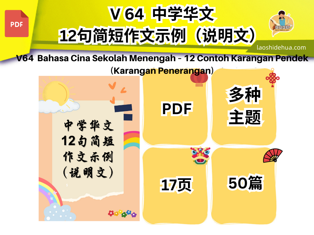 💥V 64💥中学华文-12句简短作文示例(说明文)💥