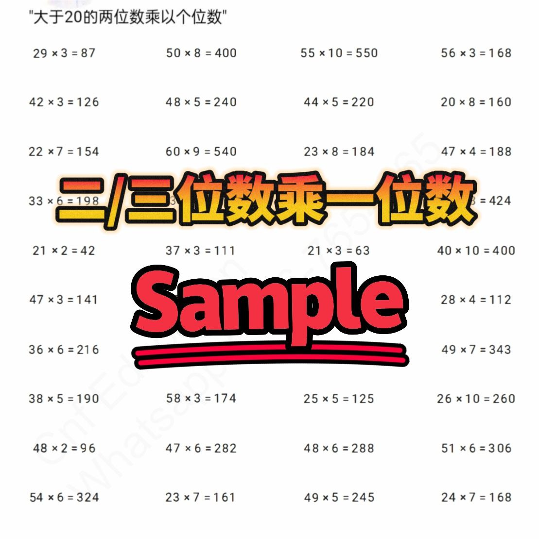 FL041 二三位数乘𝟭位数𝟮𝟱𝟬𝟬题