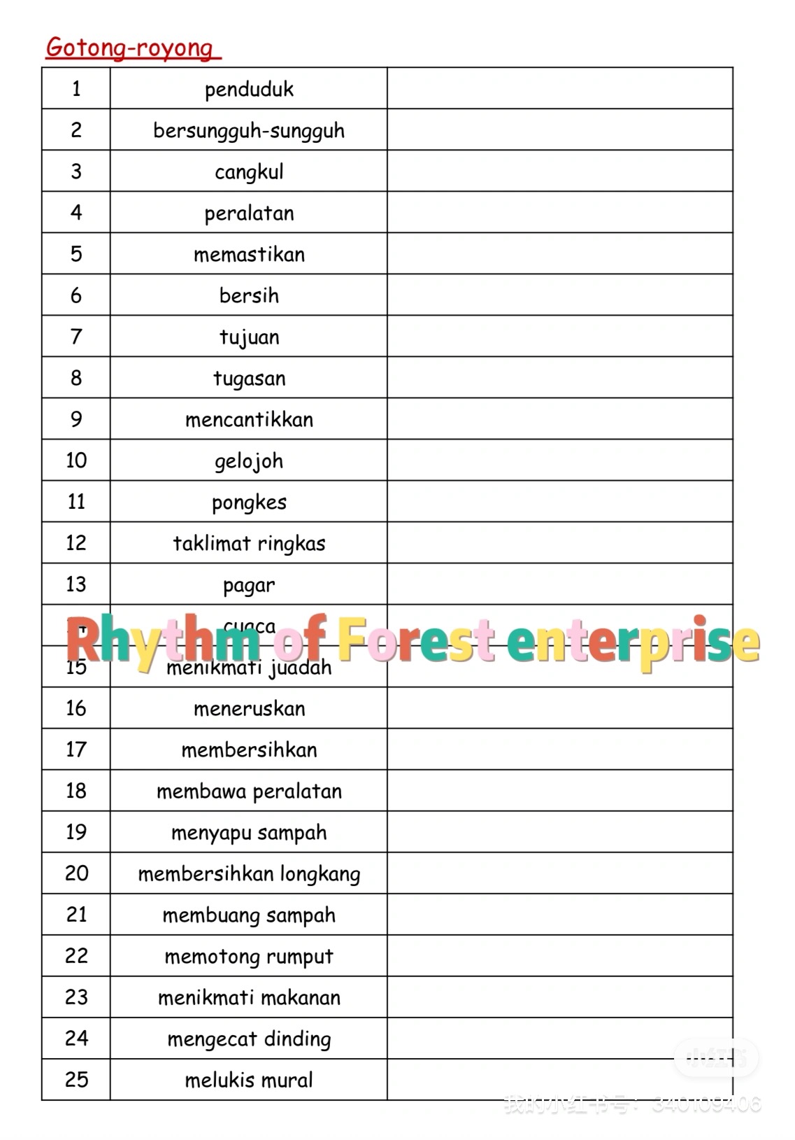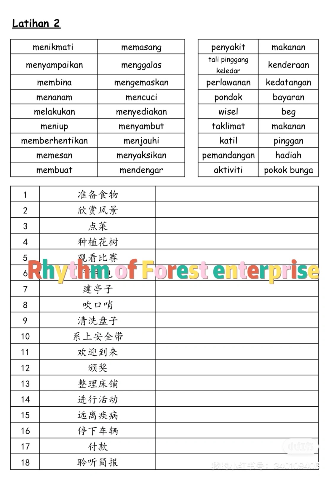 Kosa kata 词汇练习 tahun 4-6