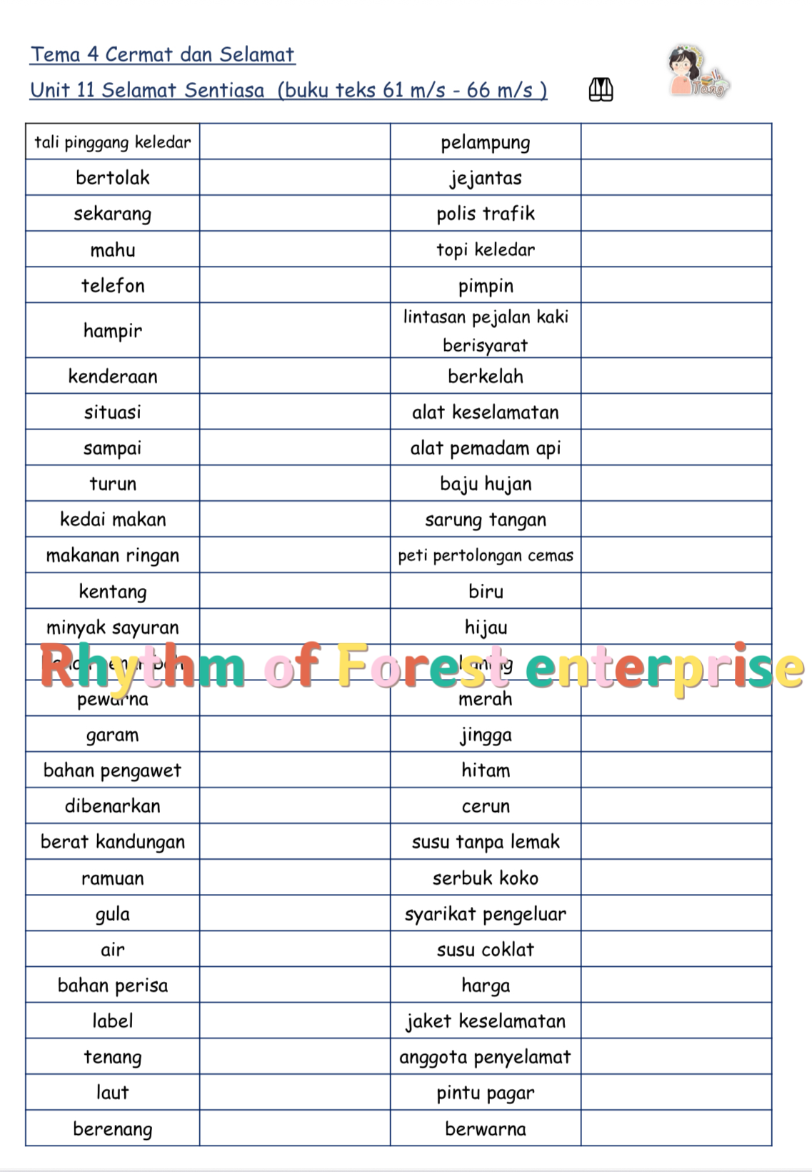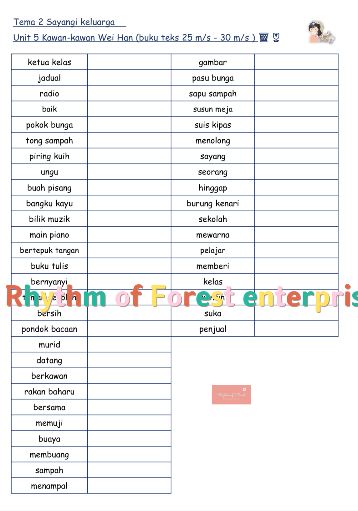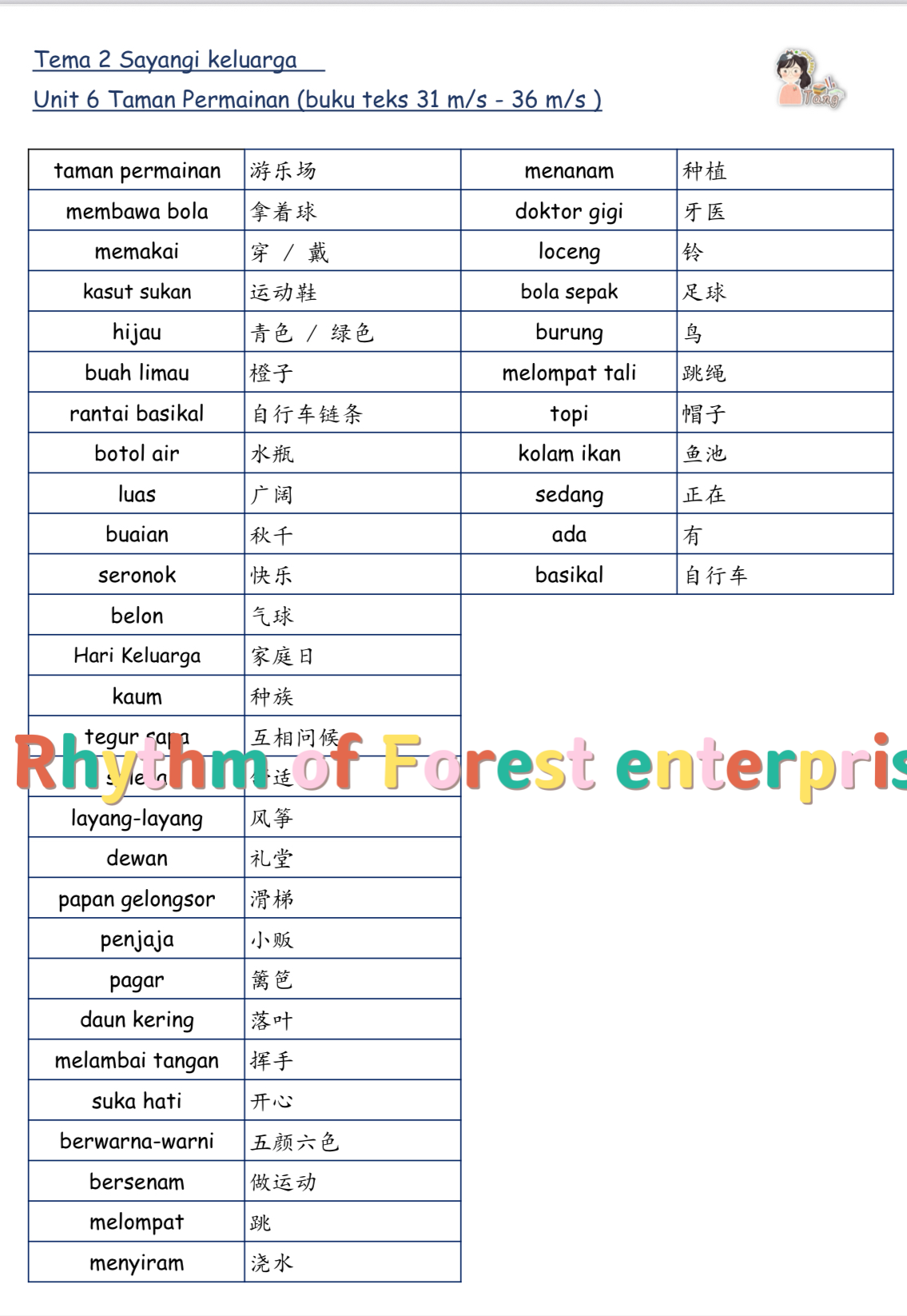 Kosa kata tahun 1 词汇练习