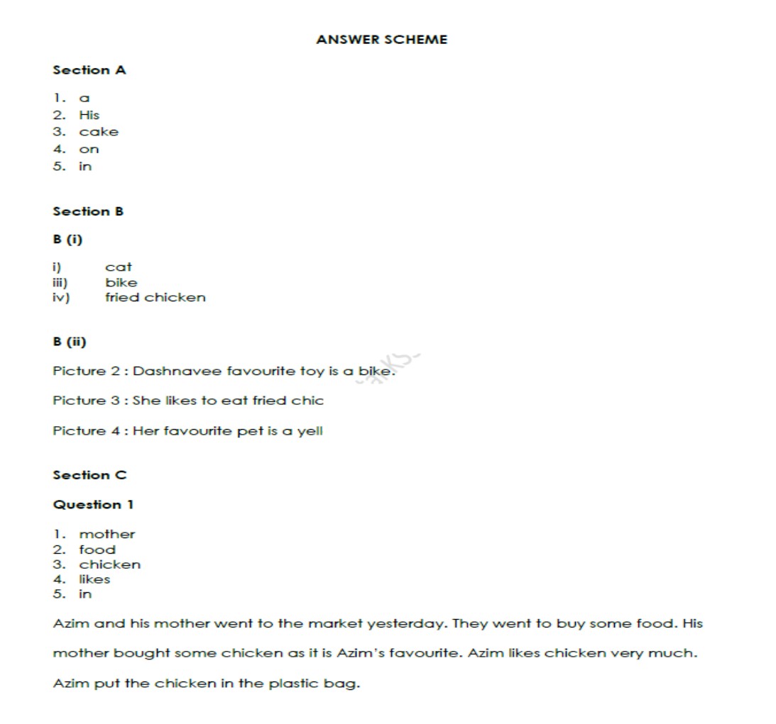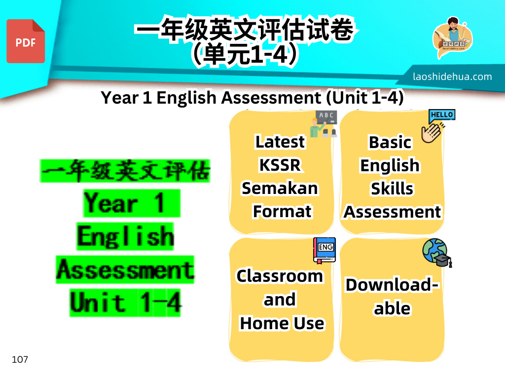 一年级英文评估 Year 1 English Assessment Unit 1-4