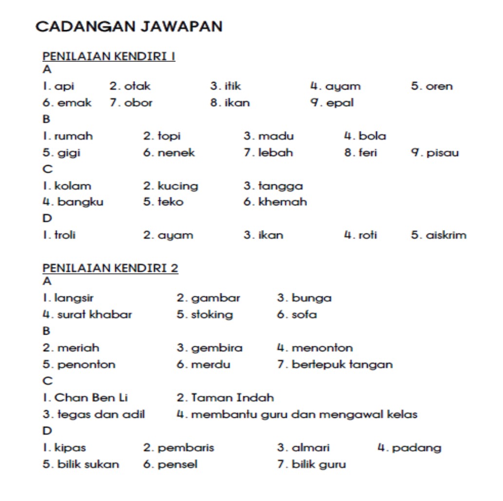 一年级 马来文 评估 (15份) Tahun 1 Bahasa Melayu Penilaian Kendiri (15 set)