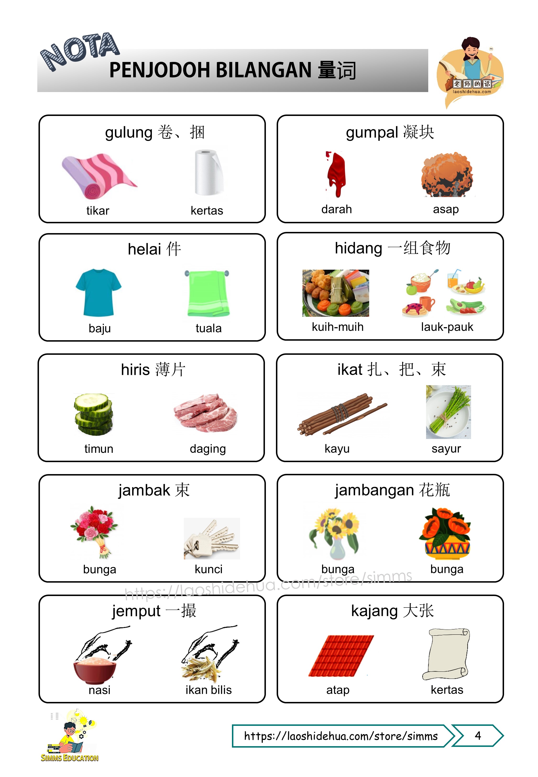 ![[小学马来文] 量词 (笔记和练习) Penjodoh Bilangan (Nota & Latihan) - Image 2](https://laoshidehua.com/wp-content/uploads/2023/04/PenjodohBilangan.jpg)