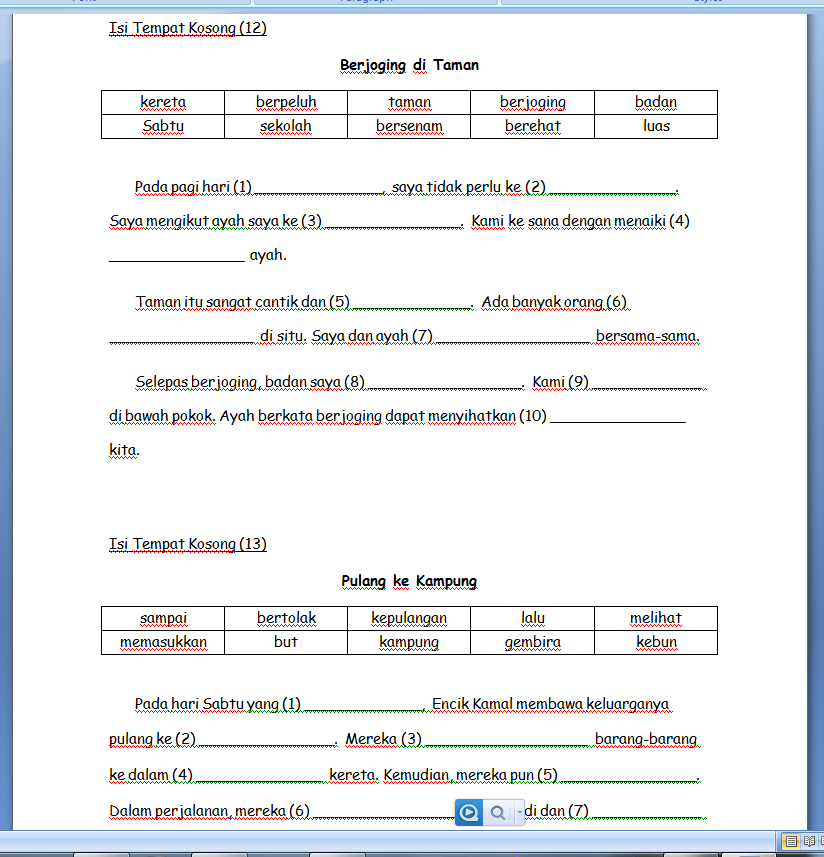 15 set Latihan Lengkapkan petikan 短文填充练习
