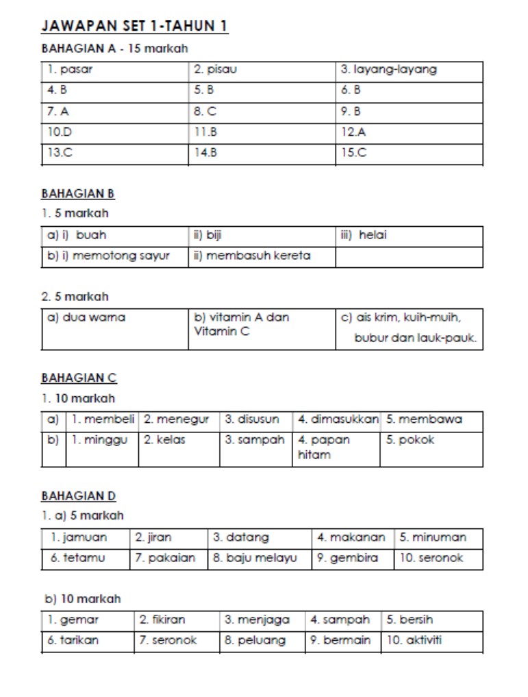 | Tahun 1 Bahasa Melayu UASA 1 - 6 set | set 1, set 1-2, set 1-3, set 1-4, set 1-5, set 1-6 |