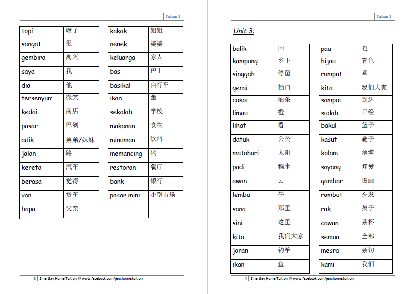 | 练习 Latihan | 上半年 Jilid 1, 下半年 Jilid 2, 全年 Tahunan |