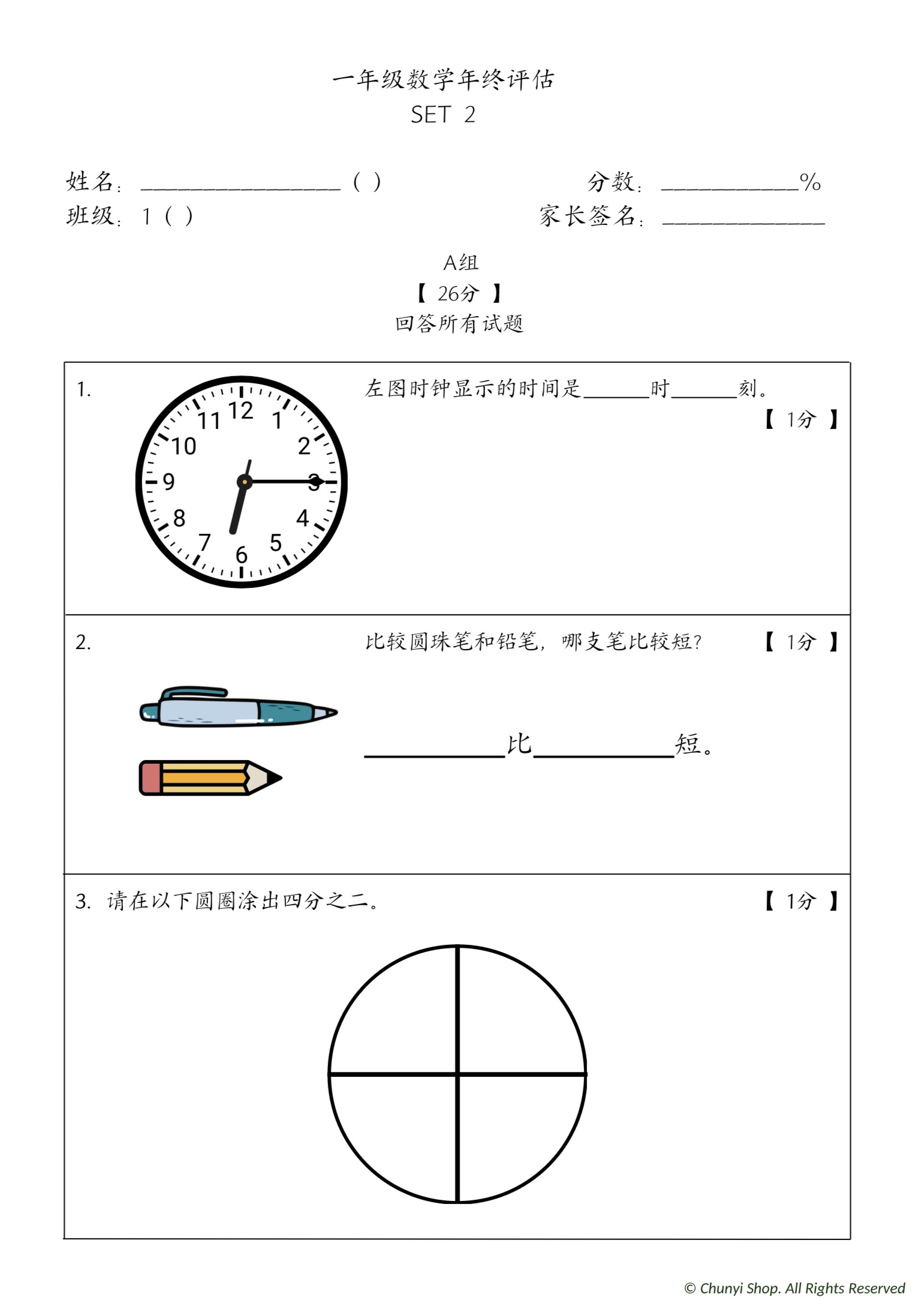 👉 本试卷版权归 Chunyi Shop 所有,严禁转卖或抄袭,否则一律公开处理