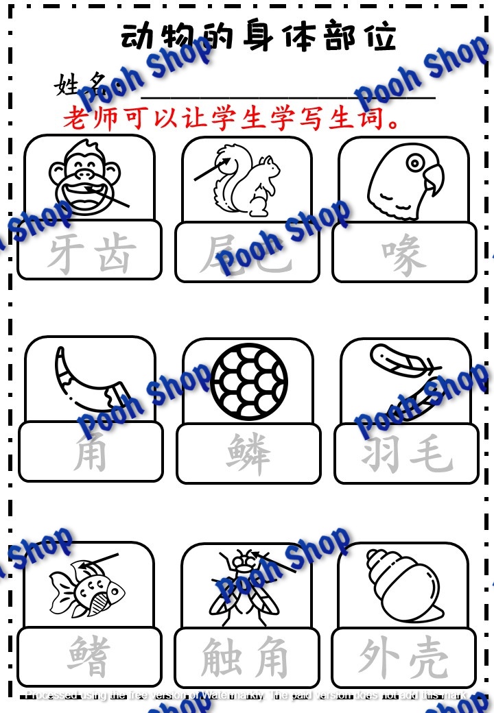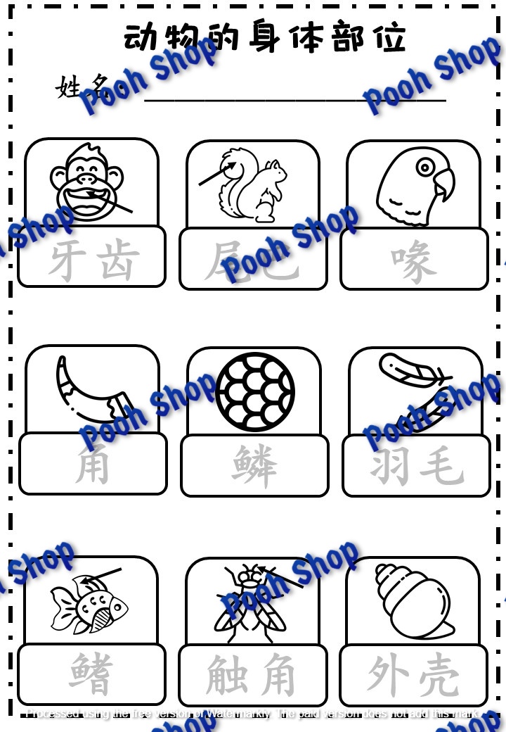 学生可以通过剪贴方式学习关于动物身体部位。