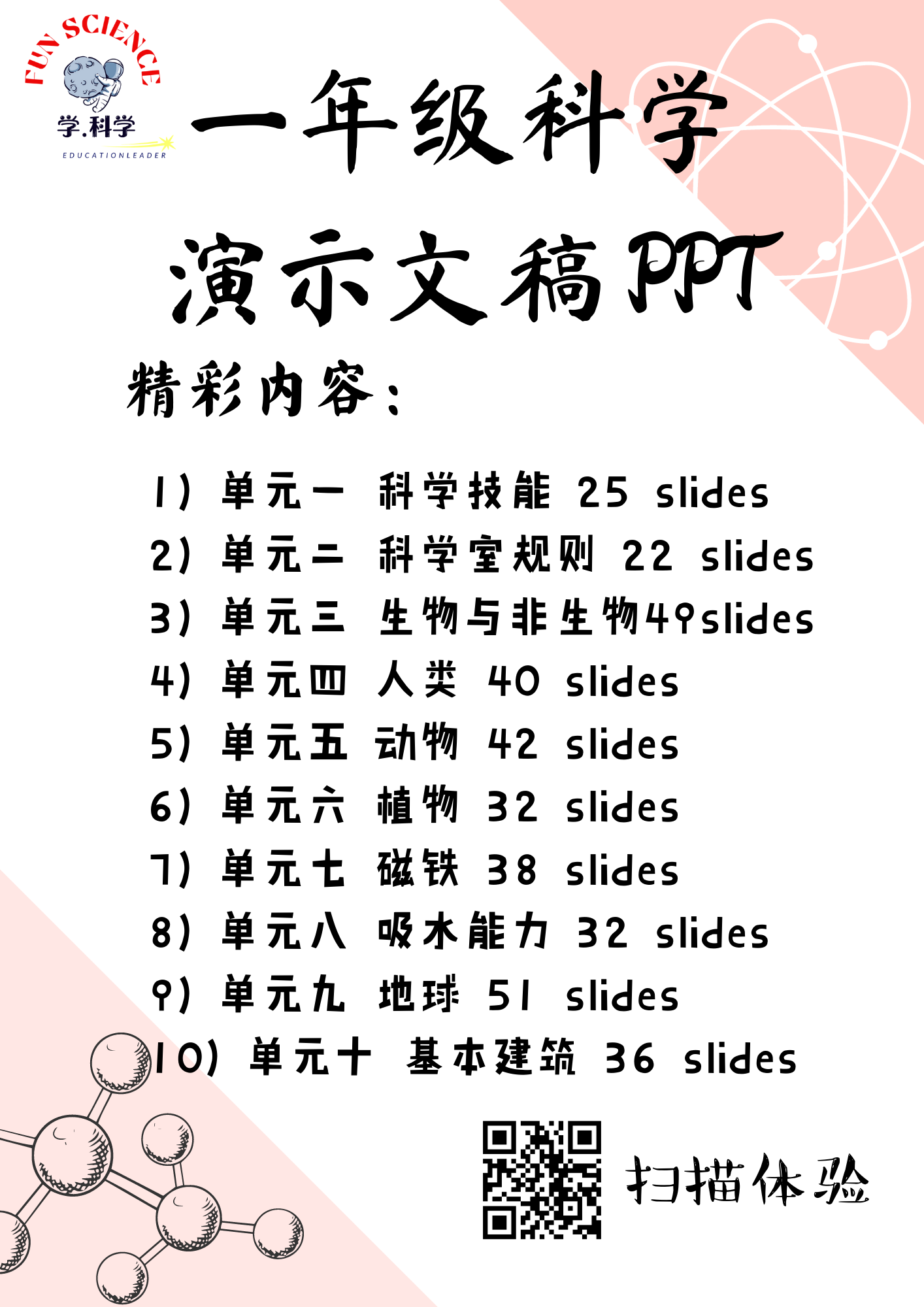 👍超值配套:一年级科学PPT+一年级科学FUN笔记+练习(上下册)+一年级科学单元评估