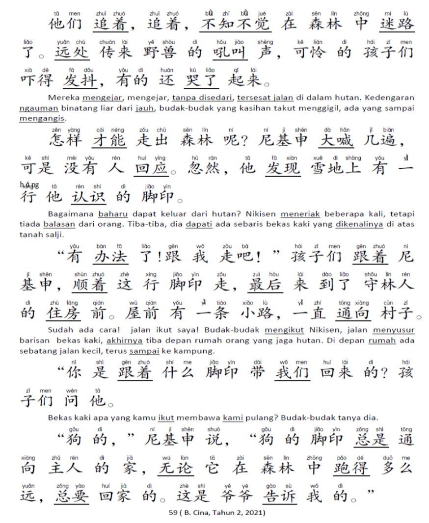二年级华文课本附有拼音.马来文解释. penerangan dalam Bahasa Malaysia