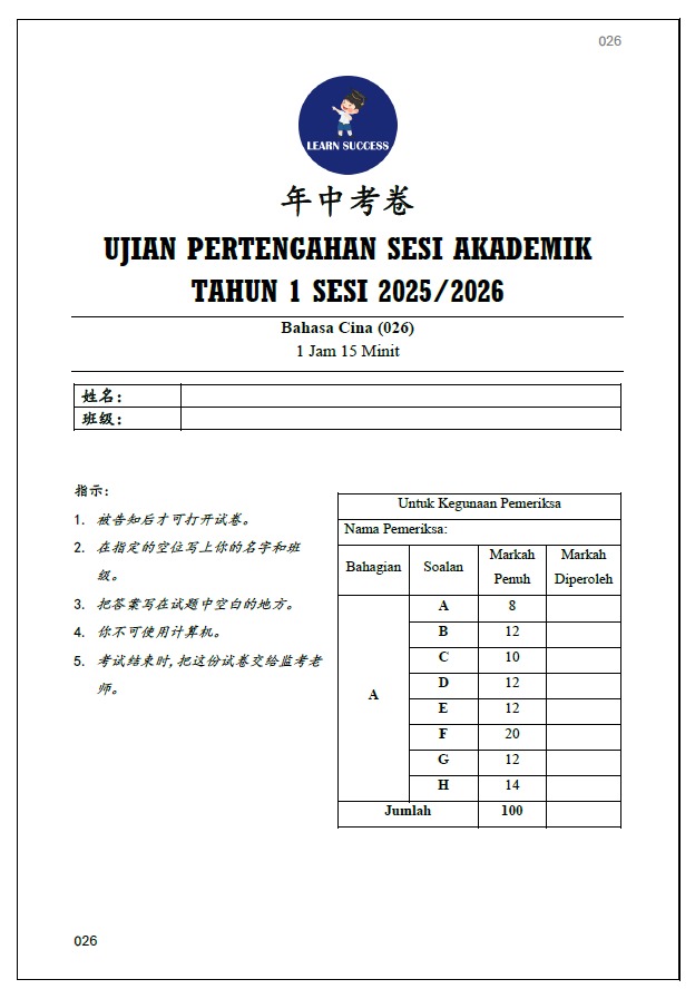 | OPTION | 全科 FULL, 华文 CHINESE, 英文 ENGLISH, 国文 MALAY, 数学 MATH, 科学 SCIENCE |