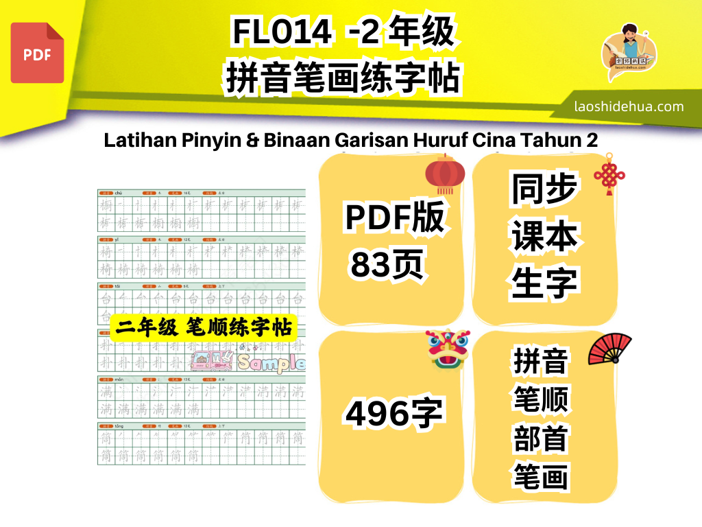 𝗙𝗟𝟬𝟭𝟰 – 2 年级华文拼音笔画练字帖