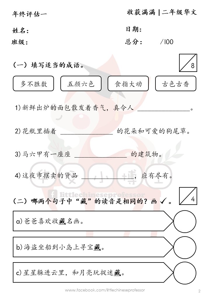 C28🎓Softcopy🎓【收获满满】二年级华文年终评估【Year 2 Chinese】Mandarin Year-End Assessment