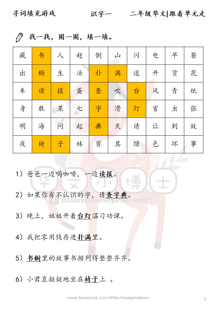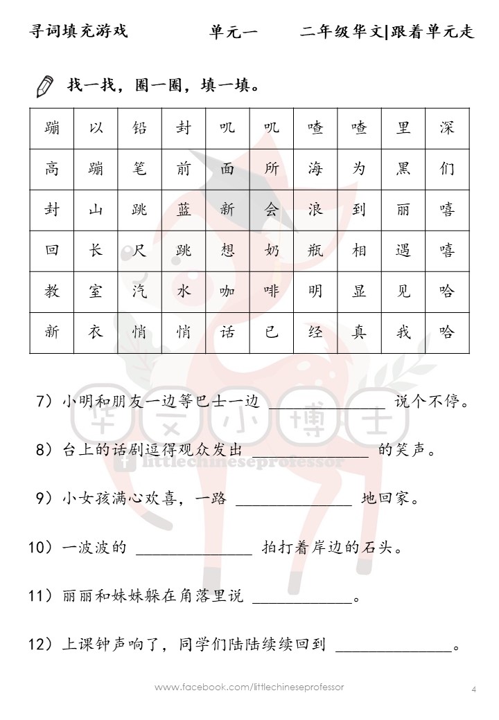C10🎓Softcopy 🎓【二年级华文🚌跟着单元走】寻词填充游戏 【Year 2 Chinese】Mandarin Word Search Puzzles & Fill in the Blanks