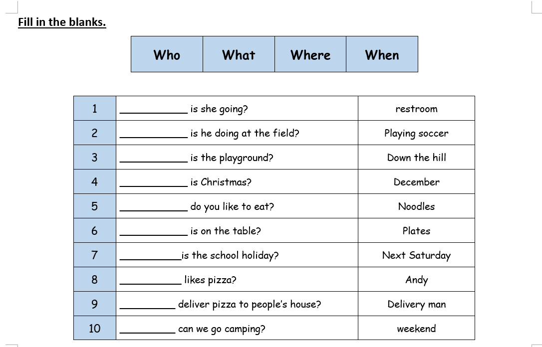 [Year 1-2 English] WH questions