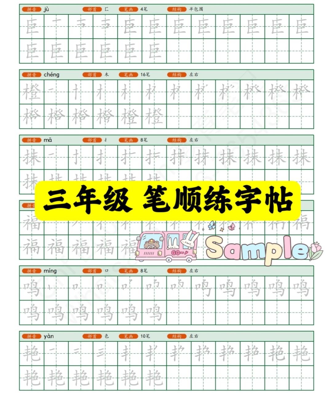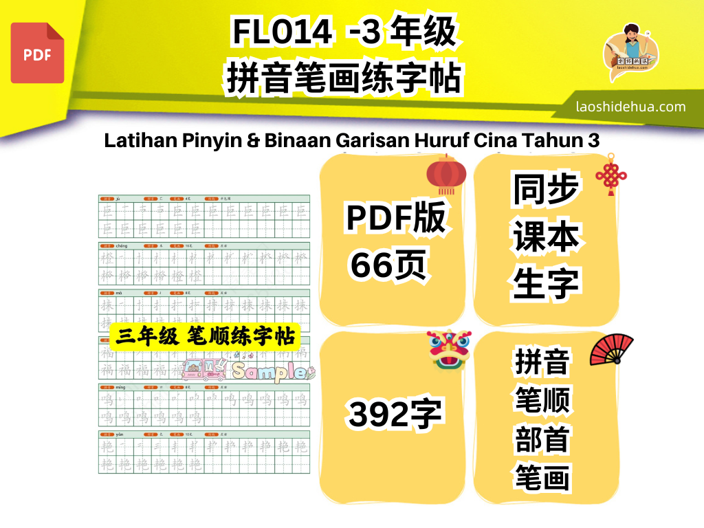 𝗙𝗟𝟬𝟭𝟰 – 3 年级华文拼音笔画练字帖