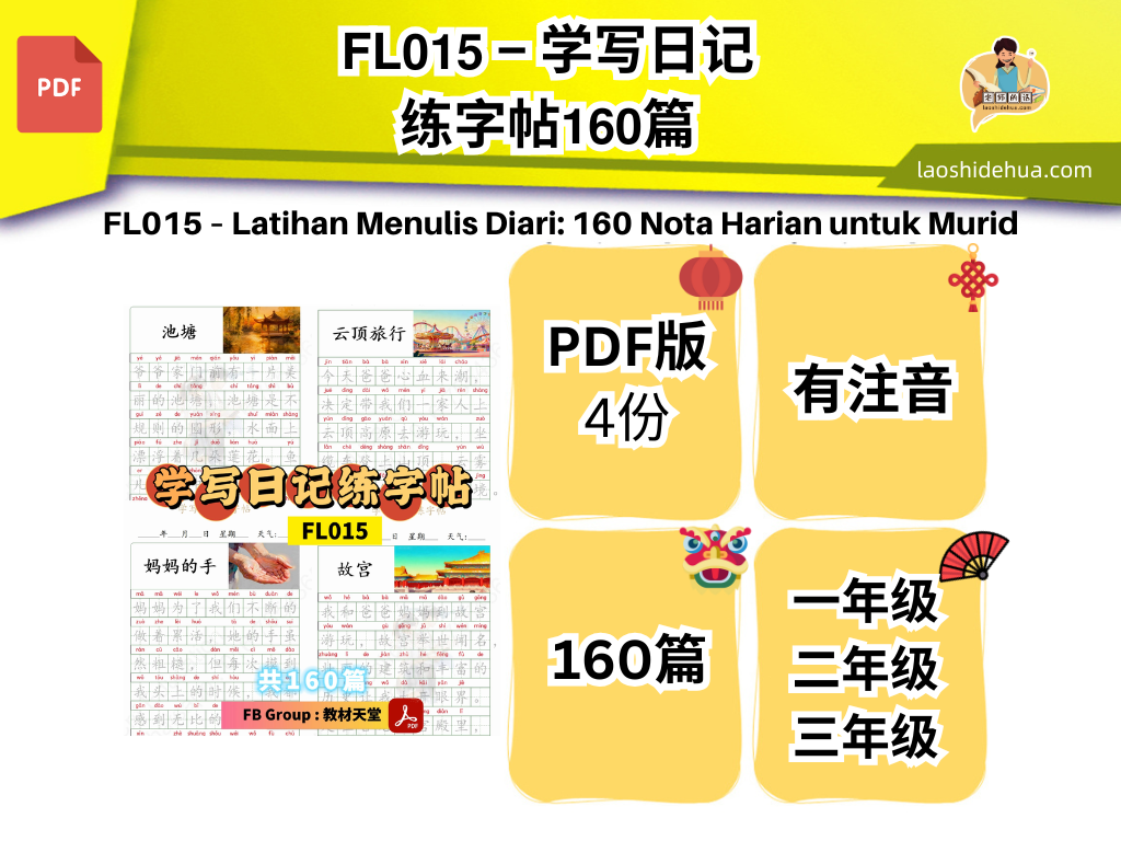𝗙𝗟𝟬𝟭𝟱 – 学写日记练字帖𝟭𝟲𝟬篇