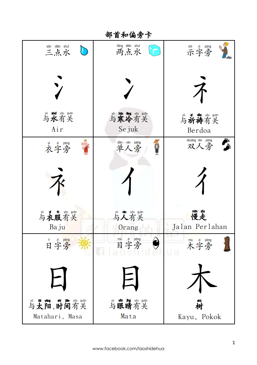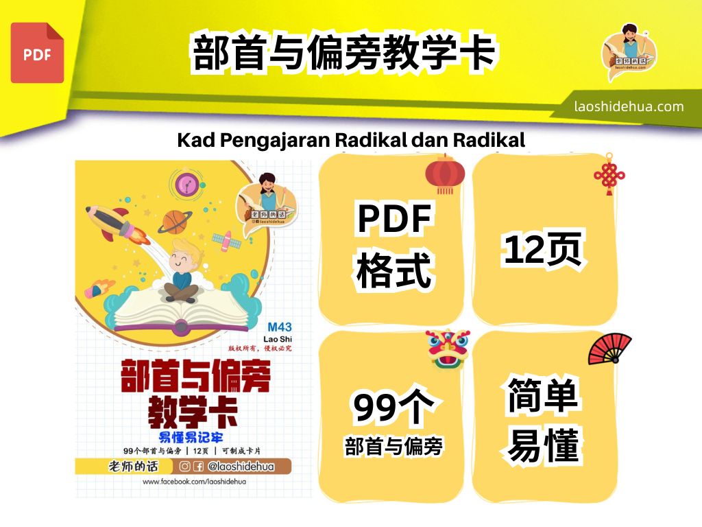 ![[低年级华文] 部首与偏旁教学卡 [Chinese] Character of Chinese Words Teaching Cards - Image 2](https://laoshidehua.com/wp-content/uploads/2021/06/M43-部首与偏旁-教学卡.png)