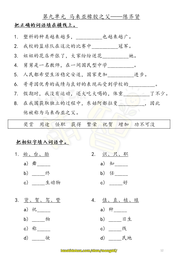 ![[三年级华文] 单元练习 - Image 3](https://laoshidehua.com/wp-content/uploads/2021/06/单元练习(萌智).png)