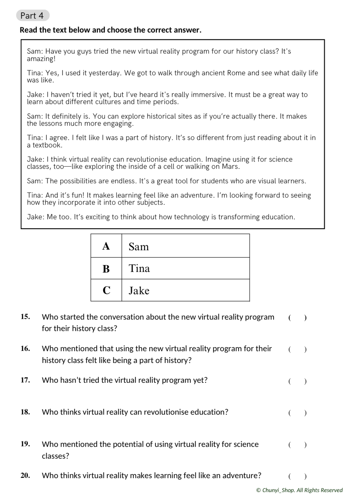 ⚠️这个试卷的版权属于chunyi_shop,一律不允许转卖或抄袭,发现一律公开处理