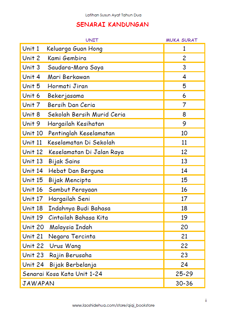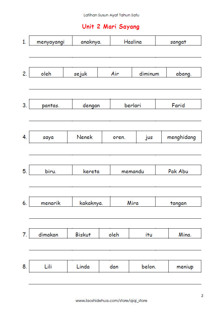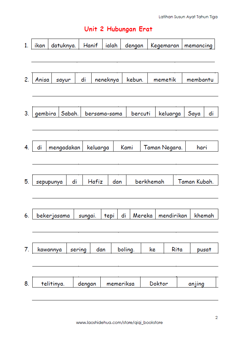 【Tahun 2】Latihan Susun Ayat Mengikut Unit