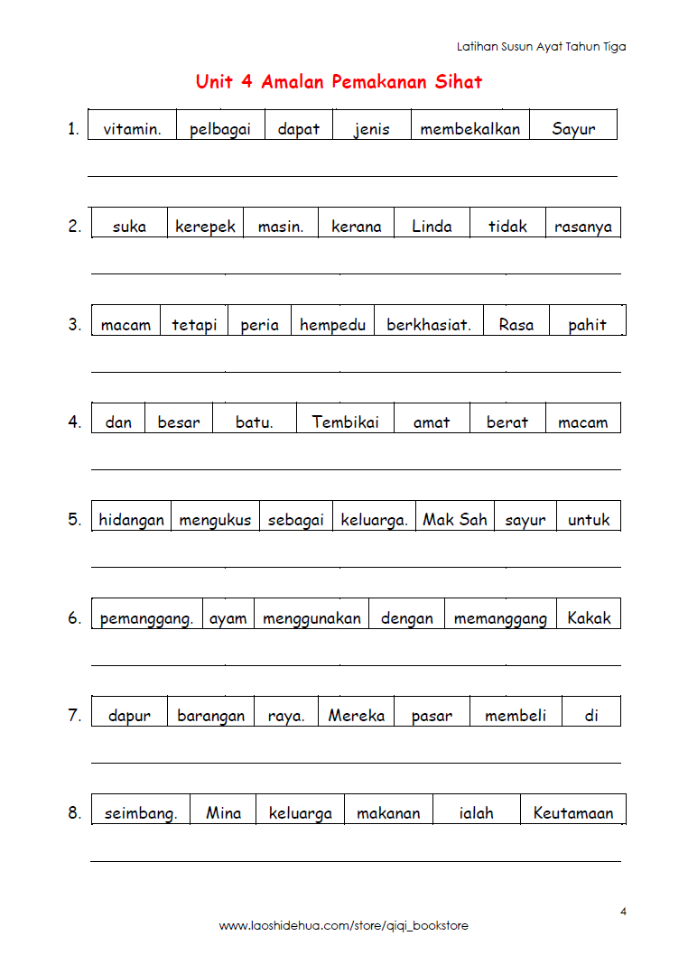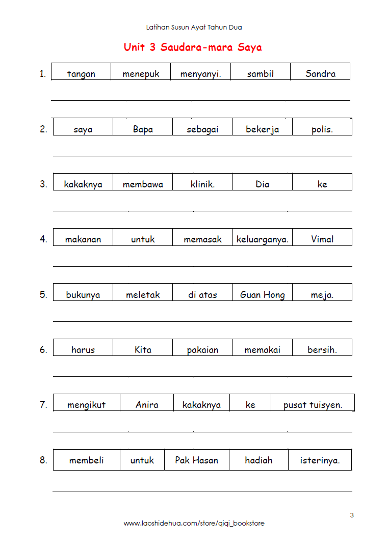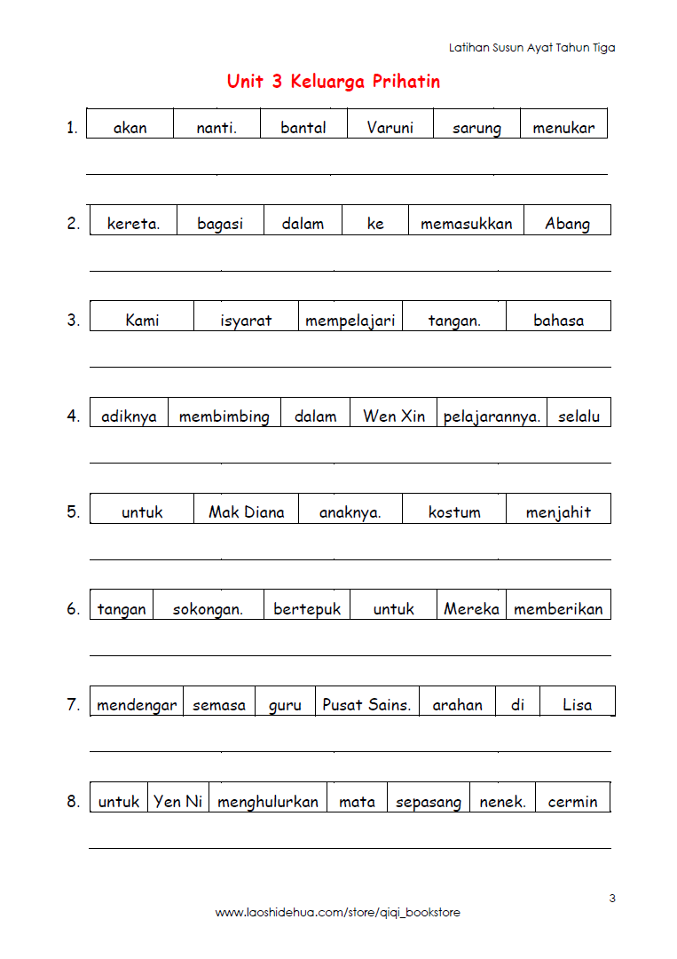 【Tahun 3】Latihan Susun Ayat Mengikut Unit