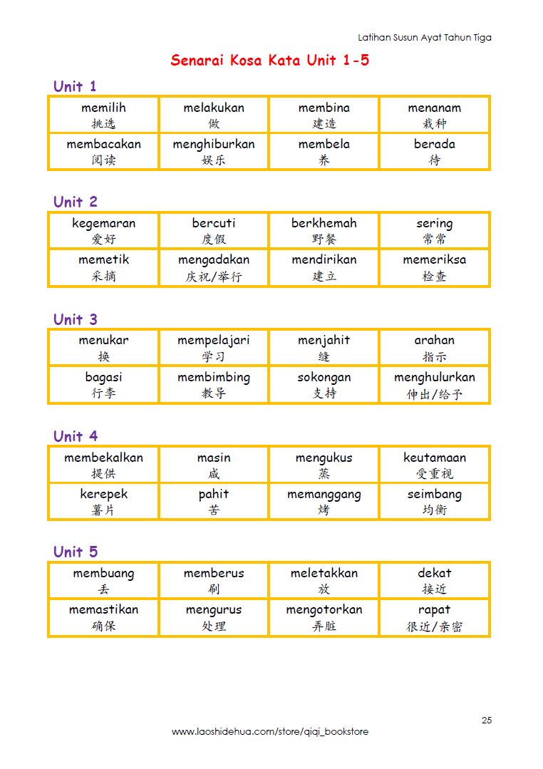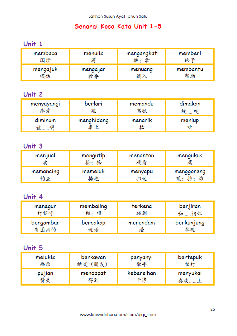 ✅ 根据课本单元编写 ✅ 24个单元 ✅ 29页练习 ✅ 备有答案 ✅ 每个单元有8道题 🎁 免费送中巫翻译的生字列表