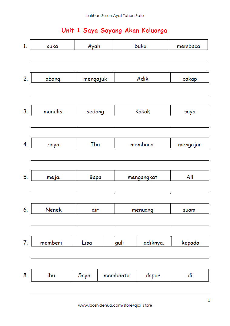 【Tahun 1】Latihan Susun Ayat Mengikut Unit