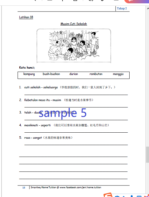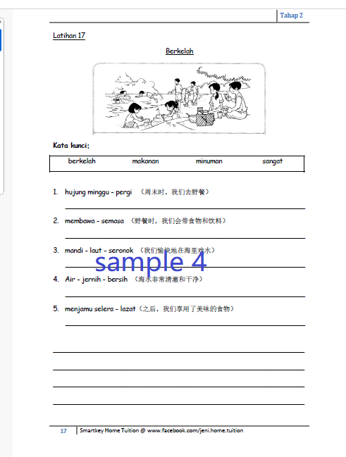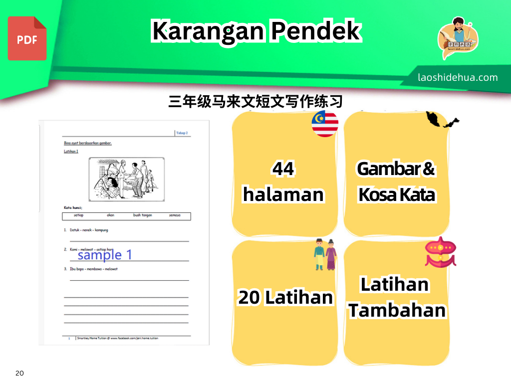 – 20 sets latihan & Bonus 2 sets = Total 22 sets bina ayat / 20 份练习+2 份附加练习= 总数 22 份练习