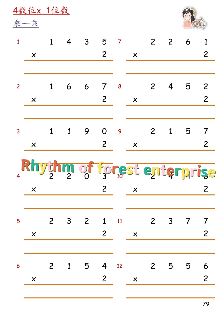 乘法没有答案⚠️⚠️(妈咪们可以鼓励小孩们使用计算机自行检查答案哦)